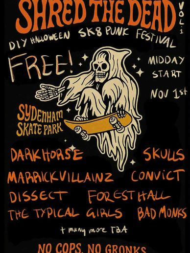 DIY punk show at Sydenham Skatepark, Shred The Dead festival.
